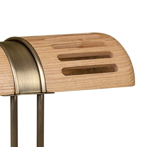 Turing Table Lamp has a modern Piano Desk Lamp structure, meticulously handcrafted in aged brushed brass and natural oak wood and lampshade slots provide a refined radiance to an exclusive room. The Turing Table Lamp compounds the most premium office atmosphere, ideal to cement business deals and strengthen relationships.