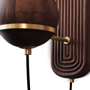 With an opulent and elegant round structure in smoked walnut wood, the Fleming Wall Lamp is rich in details in brushed brass and has a textured layer carved in walnut wood. Taking tradition towards a greater modern design path, the Fleming Wall Lamp delivers the right atmosphere with the brightest background.