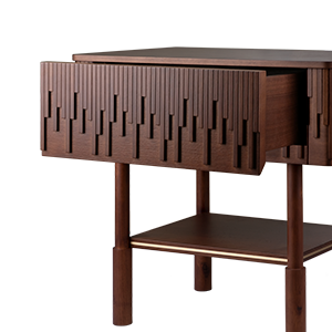 Handcrafted by some of the best artisans in Portugal, the bedside tabletop is adorned with asymmetric wood details that confer to this bedside uniqueness.