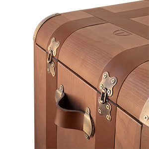 In the world of craftsmanship, the Burke trunk side table is a testament, to meticulous artistry. This remarkable piece is meticulously crafted from handpicked wood. Enveloped in the elegant embrace of saddle leather. It is adorned with brass handles, corner accents, locks, and studs that elevate its magnificence. The Burke Side Table truly exemplifies sophistication and refined taste.