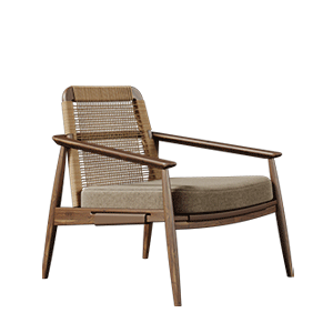 Rigorously handcrafted in walnut wood, the sumptuous and textured backrest cords of the Adam armchair effortlessly complement the natural beauty of an interior garden or living space, creating an opulent and organic atmosphere that evokes relaxation and indulgence.